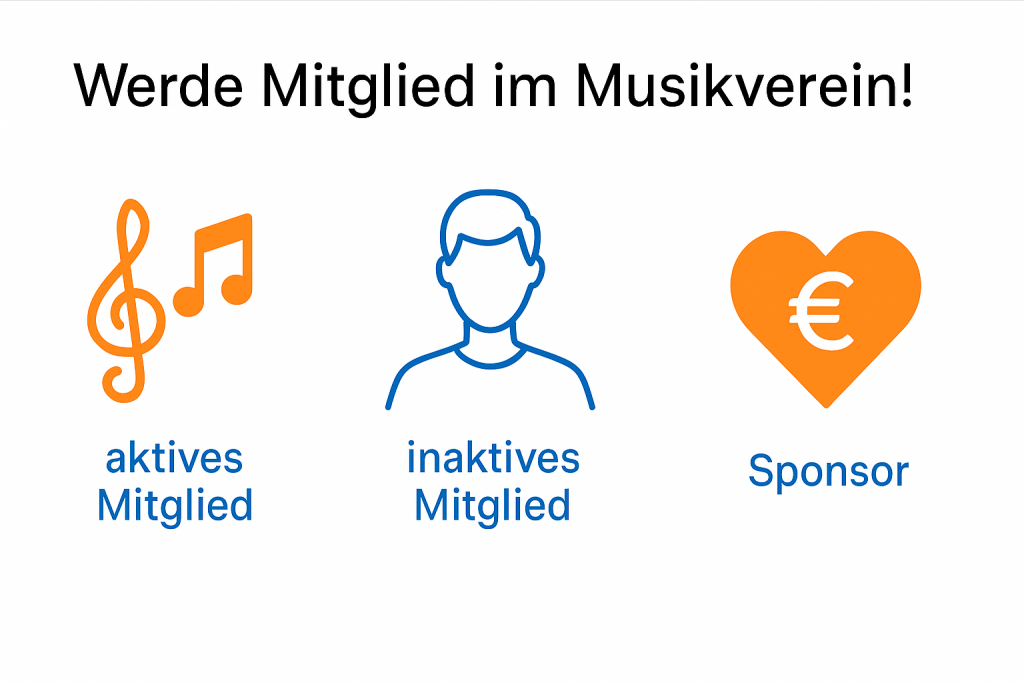 Ob als Musiker*in im Orchester, als inaktives Mitglied oder als Sponsor -wir freuen uns über dein Interesse an unserem Verein!